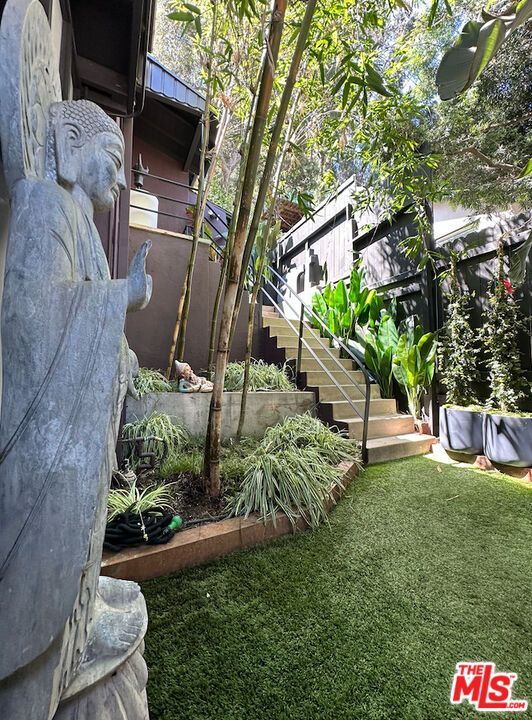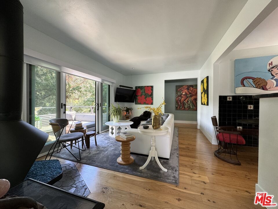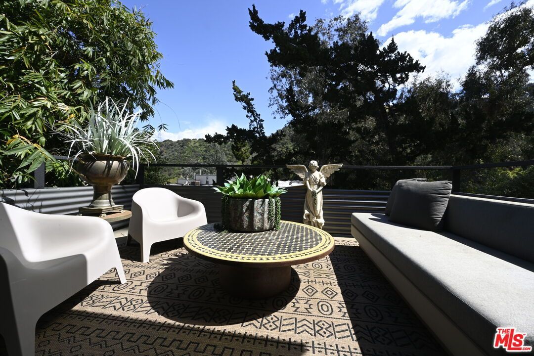 Amazing writers retreat in the heart of Laurel Canyon on Quiet Cul-De_sac street.2 bedroom 1 bath upper unit in a recently remodeled duplex. You enter through your private courtyard full of mature king bamboo. Once you enter this unit you feel like you are the only one on the mountain. There is a furnished front deck just off the living room with treeline and mountain views. It is perfect for nighttime star gazing. There is a private back patio with a Restoration Hardware sofa and a custom dining table. Mature foliage and trees with several water features and fountains add a serene Zen-like feel. Truly one of a kind.New heat / AC unit, recently remodeled bathroom, knotty cypress hardwood floors throughout, deep Kohler soaking tub, new dual-glazed windows and doors, Swedish gas fireplace, and more. Offering this unit at $4,550 unfurnished or $4,750 furnished.